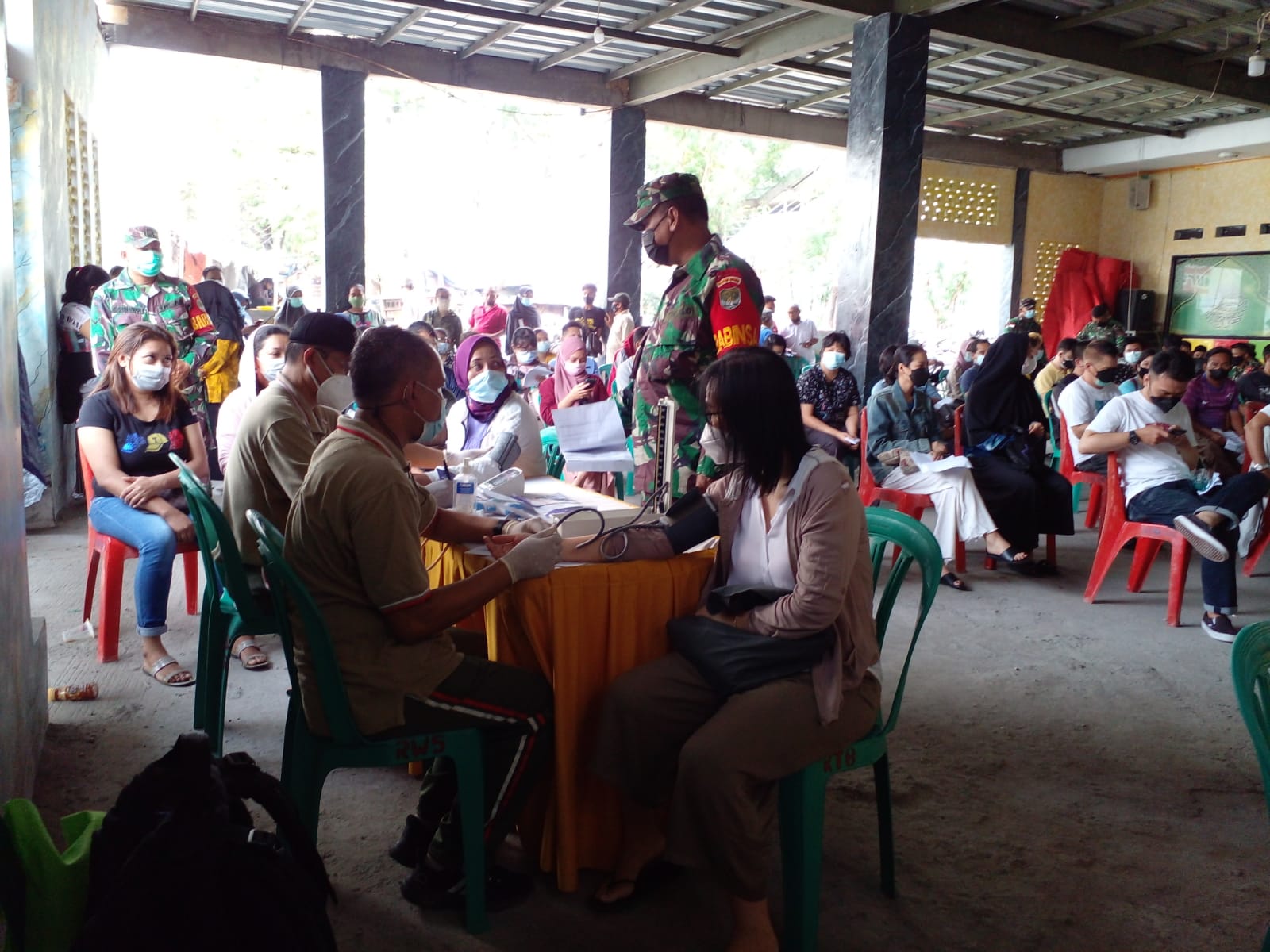 Danramil mengajak dan menghimbau kepada masyarakat untuk mengikuti serbuan vaksinasi nasional Covid-19 karena vaksin ini gratis, aman dan halal.