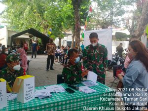 Jakarta Barat, Updatetodaynews.com – Serbuan vaksinasi TNI- Polri, Koramil 01/Tamansari Kodim 0503/JB dan Polsek Tamansari Metro Jakarta Barat di gelar dengan 475 orang yang hadir dan berhasil di vaksin sebanyak 470 orang.