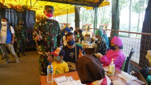 Bogor, Updatetodaynews.com – Warga masyarakat Kecamatan Cisarua dan Megamendung sangat antusias dengan kehadiran serbuan Vaksinasi Covid-19 gelaran Korem 061/Suryakancana yang dilaksanakan di Taman Wisata Matahari, Minggu (5/9), itu terlihat pada kegiatan vaksinasi sehari sebelumnya yaitu Sabtu atau kemarin, yang mana jumlah peserta vaksinasi ternyata melebihi kuota vaksin yang disediakan yaitu 1400, padahal kuota vaksin hanya tersedia 1000 vaksin, oleh karena itu maka hari ini kuota vaksinnya ditambah menjadi 1500. Keterangan itu disampaikan oleh Danrem 061/SK Brigjen TNI Achmad Fauzi S.I.P.,M.M. kepada awak media.