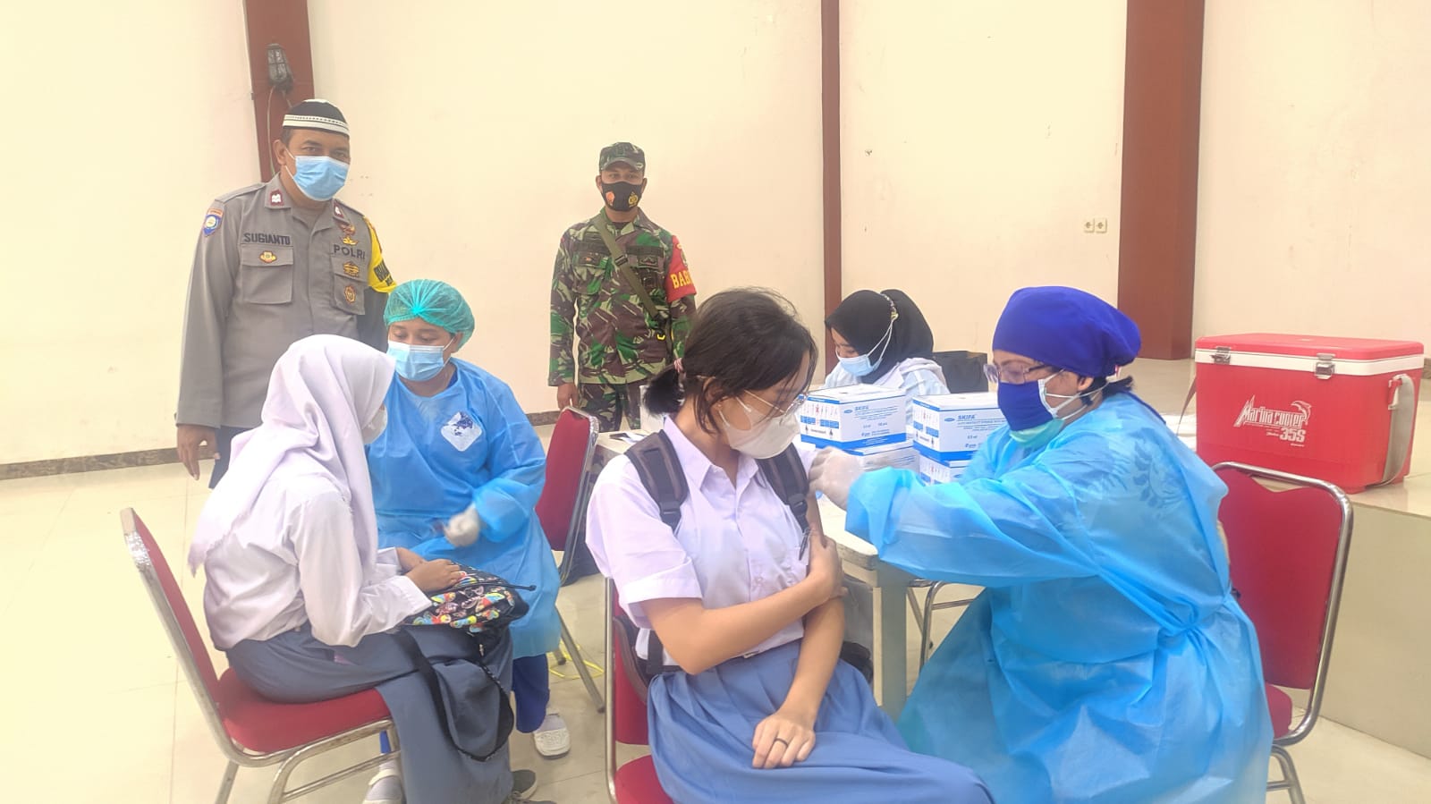 Vaksinasi di dukung oleh Tim Nakes Dokter dan Bidan dari Relawan Kecamatan Bojonggede antara lain dr. Sri Elvina, Bidan Vita Bidan Susan, Bidan Murni, Suster Nova, Suster Ratna, Suster Feni Suster Heni, Bidan Wulan serta Bidan Rika.