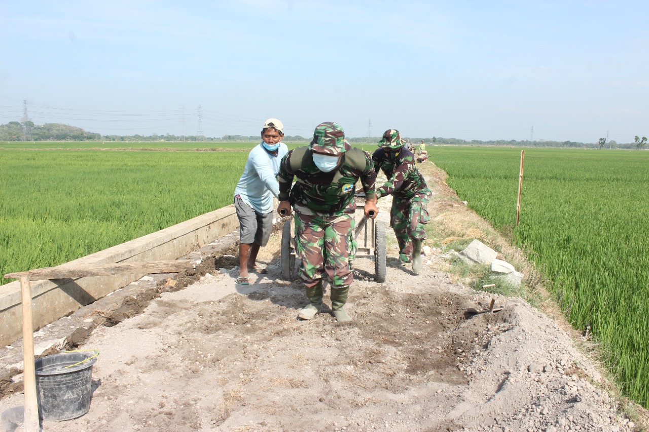 “Pengurugan jalan ini harus kita laksanakan dengan segera, mengingat pengerjaan pengurugan tergantung dengan keadaan cuaca, untuk antisipasi apabila cuaca hujan pengurugan tidak bisa di lakukan, karena medan becek dan berlumpur, droping tanah urug dari truk akan terhambat, langsiran tanah urug dengan gerobak susah dan terseok-seok jika tanah becek,” Tutur Serda Heri yang saat itu berada di lapangan.