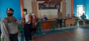 Sementara petugas Vaksinator Hj Dr. Kartini (Pkm.Tambelang) dan Rosah (Tensi) dan petugas Observasi Putri Kamelia Amk keb, Suryadi dan Kartika Amk keb. Serta Inputor Bripka Budi Sulistiyono, Bripka Ade Haryono dan Bripka Asmuri.