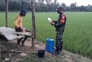 Aceh Timur, Updatetodaynews.com – Bintara Pembina Desa Koramil 14/Rantau Peureulak Kodim 0104/Aceh Timur Serda Andi melaksanakan pendampingan pertanian dalam penyemprotan tanaman padi milik Kelompok Tani Sejahtera yang berlokasi di Desa Alue Batee, Kecamatan Rantau Peureulak, Kabupaten Aceh Timur, Sabtu (11/09/2021).