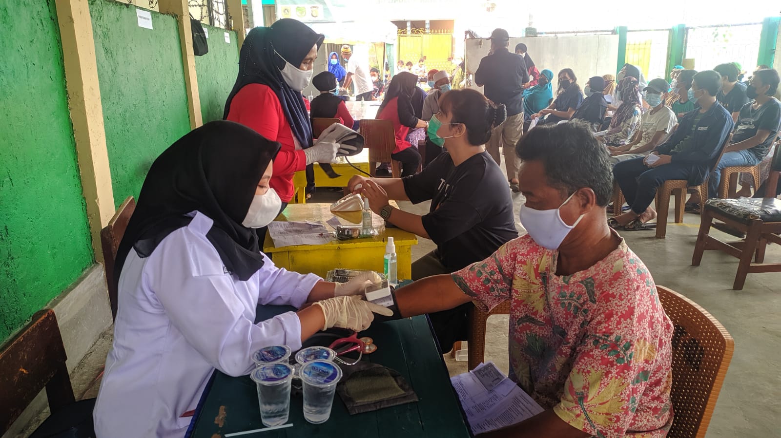 Acara berjalan dengan prokes serta,vaksin yang di gunakan adalah Vaksin Sinovac tahap 1.