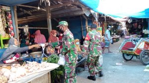 Ditengah PPKM Level 3 Babinsa Koramil 19/Tanon intensif Edukasi Prokes di Pasar Padas