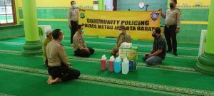 Jakarta, Updatetodaynews.com – Community Policing, Sat Binmas Polres Metro Jakarta Barat bagikan alat media protokol kesehatan kepada pengurus mesjid Jami Al Ikhlas, Jl Sumbawa Raya Rt 06/06 tegal alur Kalideres Jakarta Barat, Selasa, 14/9/2021.