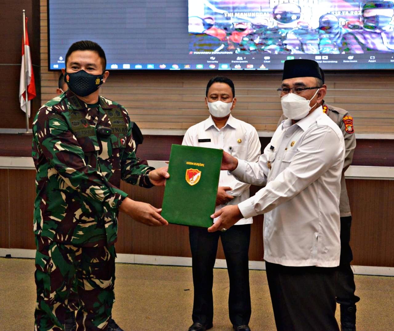 Korem 051/Wkt – Di tengah masa Pandemi Covid – 19 dan dengan tetap menerapkan protokol kesehatan, Kegiatan Pembukaan TMMD Ke-122 TA.2021, secara resmi di buka oleh Walikota Depok, KH.Mohammad Idris, M.A. di Aula Gedung Baleka II lantai 10 Pemkot Depok Jl. Margonda Raya No 54 Kel. Depok Kec. Pancoran Mas Kota Depok.