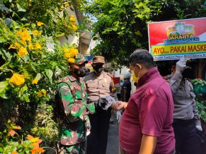 Sosialisasi PPKM Babinsa Koramil 02/TB Bersama Tiga Pilar Bagikan Masker Di Jl Gedong Panjang Pekojan