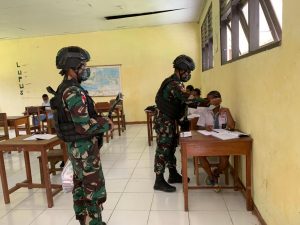 Papua, Updatetodaynews.com – Dalam rangka menjaga masyarakat perbatasan dari paparan wabah Virus Covid-19, anggota Pos Kalibom Satgas Pamtas RI-PNG Yonif Mekanis 512/QY menggelar pembagian masker kepada masyarakat di Kampung Kalibom Distrik Waris, Kabupaten Keerom Papua.