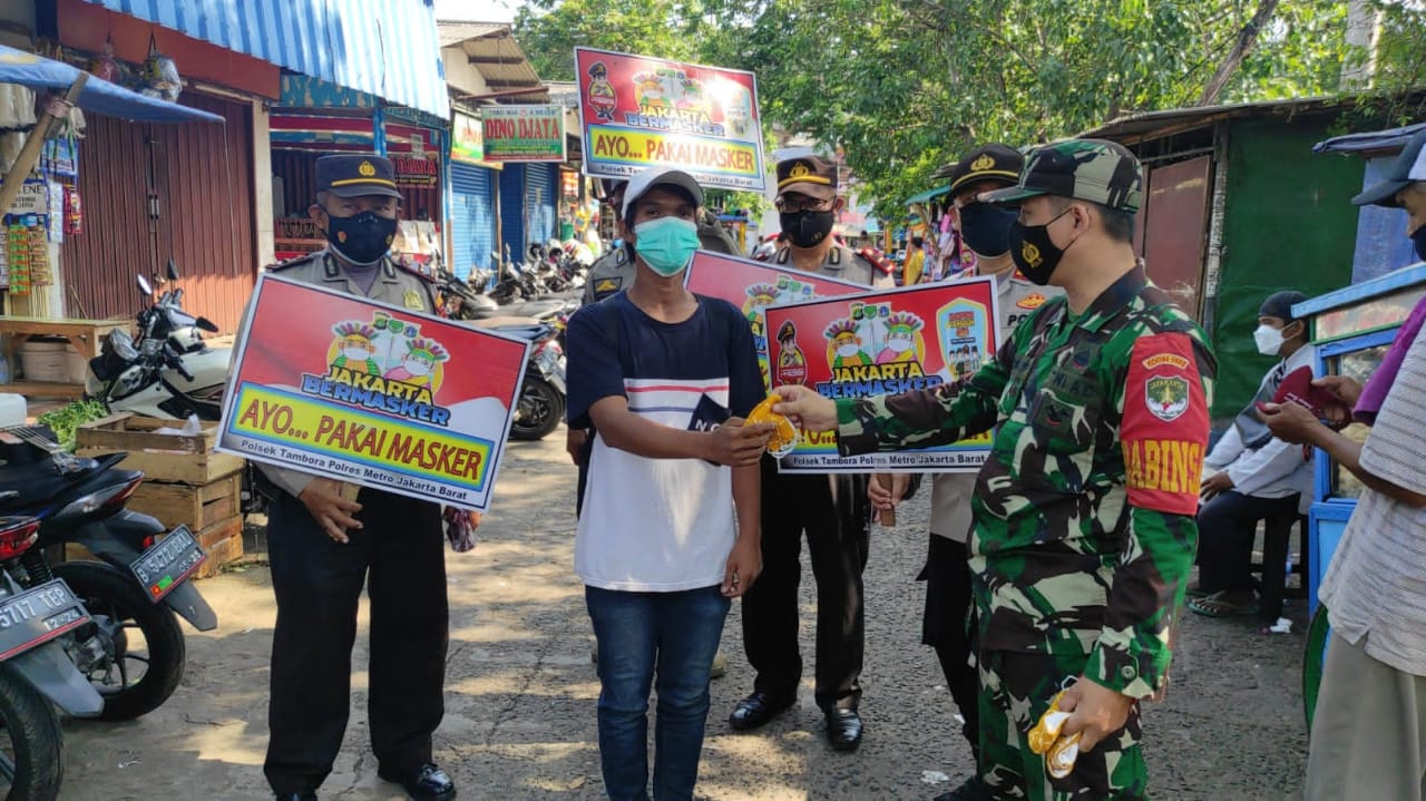 Sosialisasi PPKM yang digelar di Play Over Jl.Tubagus Angke, RT 05/04, Kelurahan Jembatan lima Kecamatan Tambora Jakarta Barat dan di Pasar Angke, jalan Stasiun Angke, RT 05/04, Kelurahan Jembatan lima Kecamatan Tambora Jakarta Barat. melibatkan 11 personil gabungan dari Koramil 02/TB, Polsek Tambora dan Satpol PP dengan membagikan masker kepada masyarakat yang melintas di Play over Angke.