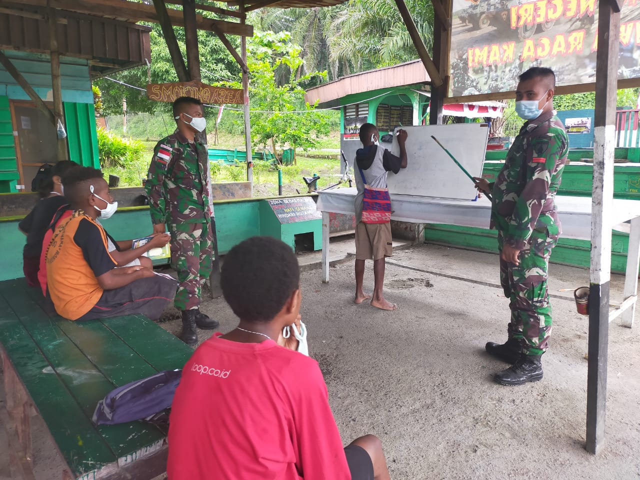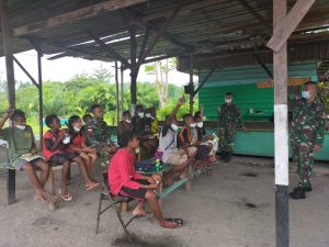 Di tempat terpisah, Danpos Workwana Letda Inf Ahmad Awaludin mengungkapkan bahwa kegiatan bimbingan belajar tersebut dilakukan dengan tetap mematuhi protokol kesehatan.