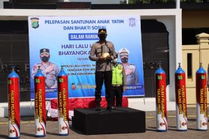 “Polisi lalulintas adalah garda terdepan, salah satu tumpuan di polri untuk selalu menampilkan tauladan kepada masyarakat, saat ini kita memberikan bantuan bersikaplah humanis, berikan pengabdian terbaik kepada masyarakat, bangsa dan negara”, ucap Putu Kholis.