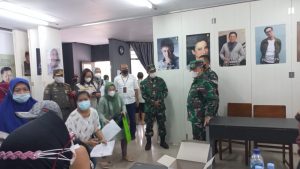 Kodam Jaya, Jakarta timur, Updatetodaynews.com – Danramil 02/Matraman Mayor Inf Dasiya dampingi Dandim 0505/JT Kolonel Kav Rahyanto Edy Yunianto bersama Staf Ahli Pangdam Jaya Kolonel Inf Haris Panca Putra pada pelaksanaan serbuan vaksinasi untuk warga masyarakat bertempat di Kantor Balai Pustaka Jln. Bunga Kelurahan Palmeriam Kecamatan Matraman, Senin (20/09/2021).
