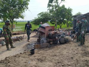 Sukoharjo, Updatetodaynews.com (22/09/21) Kejar target Satgas TNI Manunggal Membangun Desa kec 112 Kodim 0726 / Sukoharjo kejar kerahkan mesin pengaduk semen-pasir (molen) di lokasi perehaban RTLH. Pengerahan mesin molen ini untuk mempercepat proses pengadukan semen, pasir dan split untuk digunakan untuk pemlesteran lantai, Rabu (22/09/21).