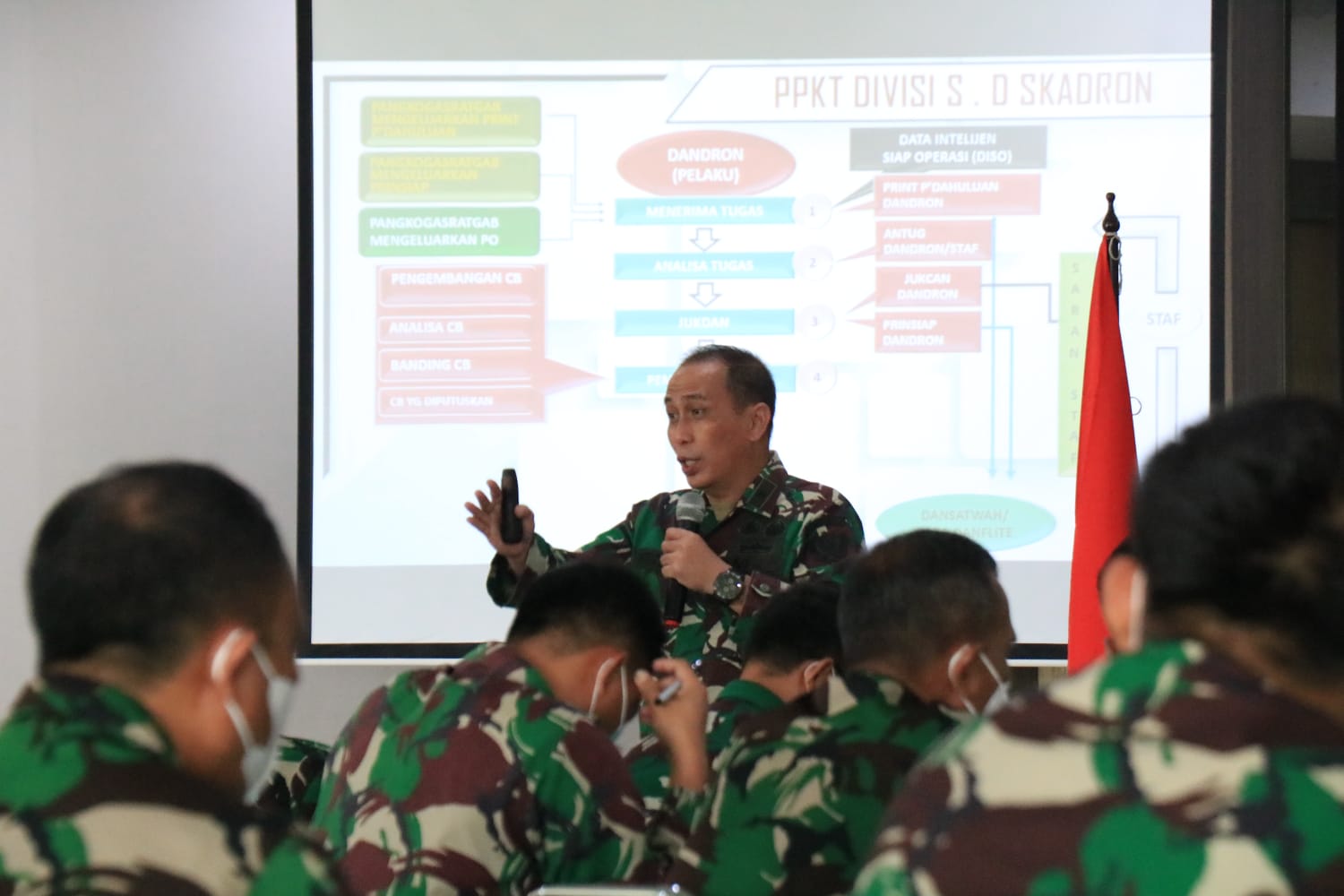 Jakarta, Updatetodaynews.com – Direktur Kecabangan Pusat Penerbangan TNI AD (Dircab Puspenerbad) Brigjen TNI Setiyo Santoso, S.I.P., M.Si., memberikan pembekalan sosialisasi doktrin lapangan (Doklap) Proses Pengambilan Keputusan Taktis (PPKT) dalam rangka pembinaan satuan (Binsat) Puspenerbad TW III TA 2021 di Aula Mapuspenerbad, Pondok Cabe, Tangerang Selatan, Banten. Jum’at (24/9/2021).