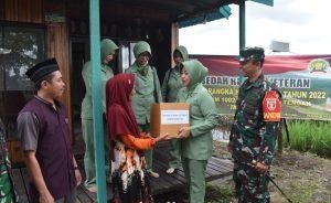 Dalam kesempatan peresmian rehab rumah veteran, Ketua Persit Kartika Chandra Kirana Cabang XXV Kodim 1002 Koorcab Rem 101 PD VI/Mulawarman Ny.Halida Gagang menyerahkan bantuan sembako kepada ibu Raudah sebagai ungkapan tali asih. (Wawan/red)
