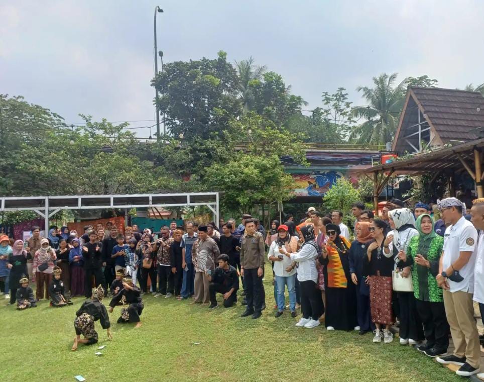 Kehadiran Menparekraf pun disambut meriah pengurus hingga masyarakat Desa Keranggan, yang mana berada di sisir Sungai Cisadane.