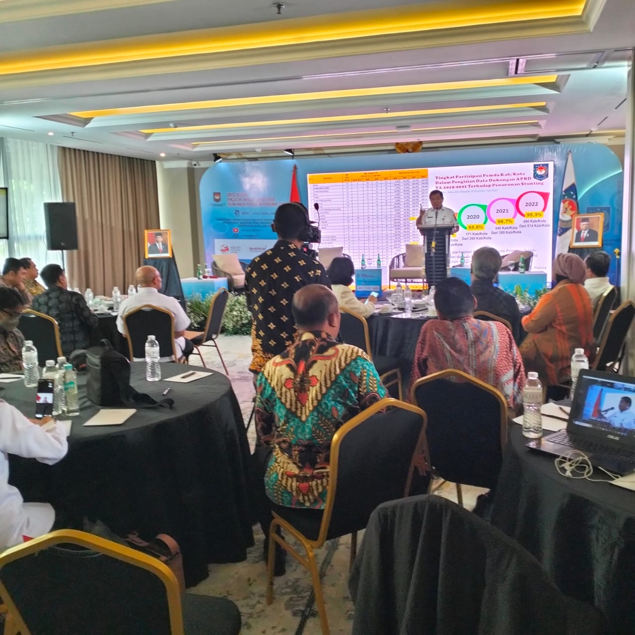 Dalam acara tersebut, turut hadir Sekretaris Utama, BKKBN; Deputi II Bidang Pembangunan Manusia, Kantor Staf Presiden; Staf Ahli Mendagri Bidang Aparatur dan Pelayanan Publik, Kepala Badan Strategi dan Kebijakan Dalam Negeri, Kemendagri; Direktur Gizi dan Kesehatan Ibu Anak, Kemenkes; Direktur Kesehatan dan Gizi Masyarakat, KPPN/Bappenas; Asdep Ketahanan Gizi dan Promosi Kesehatan, Kemenko Bidang PMK; serta perwakilan TPPS di 12 provinsi lokus stunting Tahun 2023 yang hadir baik secara luring maupun daring. Hadir secara luring Pj. Gubernur Sulawesi Barat, Asisten I Provinsi Kalimantan Selatan. Perwakilan Provinsi Kalimantan Barat Jawa Barat, Banten, dan hadir secara daring koordinator TPPS di 251 kabupaten/kota di 12 provinsi lokus stunting 2023, sedangkan peserta pusat terdiri dari kementerian/lembaga terkait.