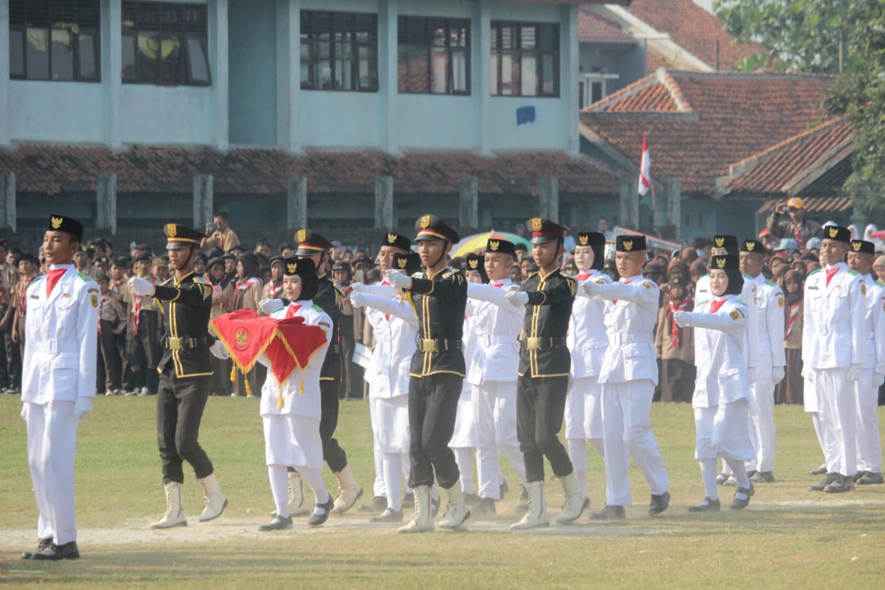 Tampak hadir pembina Paskibraka tingkat kecamatan serda Kusnadi,Siti Mulyanah, dan Peltu Jajang sebagai panitia upacara