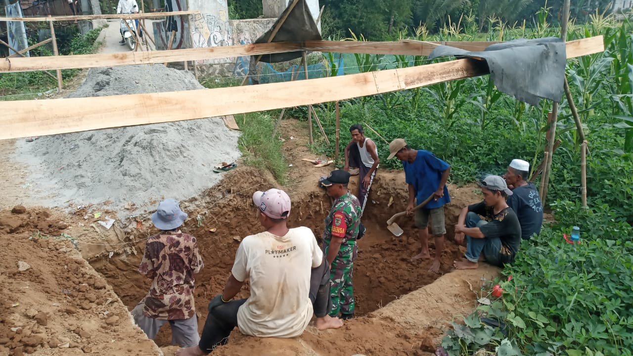 Danramil 0621-23/ Parungpanjang Didampingi Babinsa Sertu Dede Sulaeman, Monitoring Giat Pembangunan Jembatan Rawayan