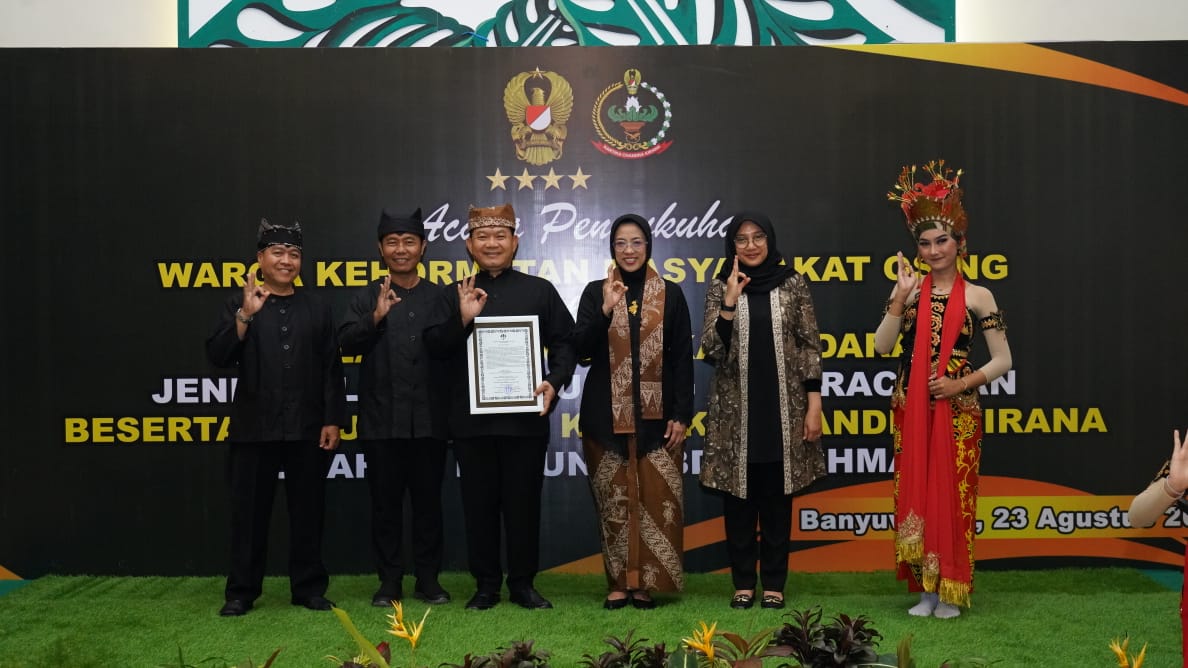 Pengukuhan tersebut dilakukan langsung Ketua Dewan Kesenian Blambangan (DKB), Hasan Basri, di Aula Hotel Grand Harvest Banyuwangi dalam prosesi menggunakan pakaian adat Blambangan dan penyematan penutup kepala serta selendang khas masyarakat Osing.