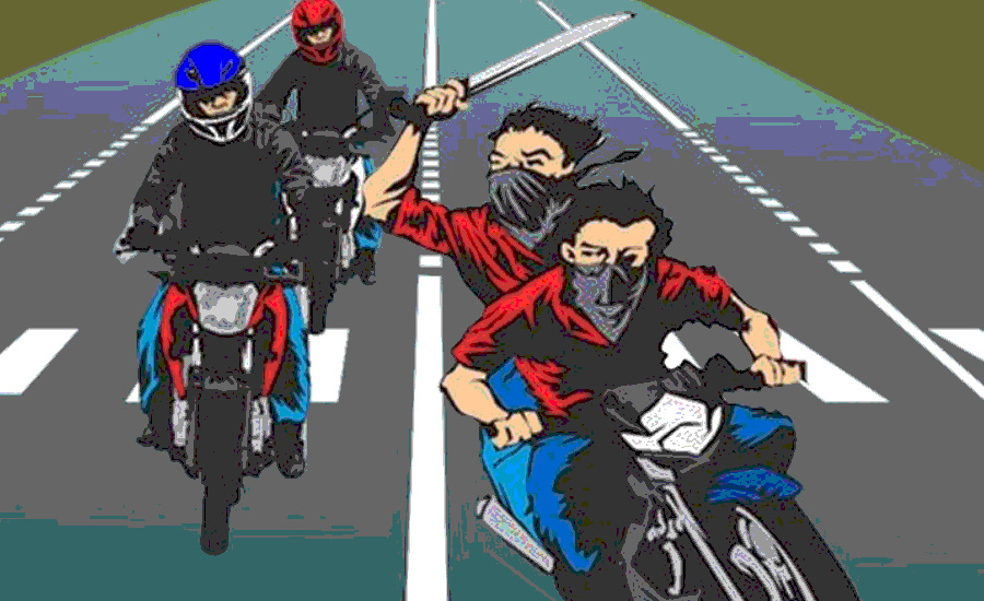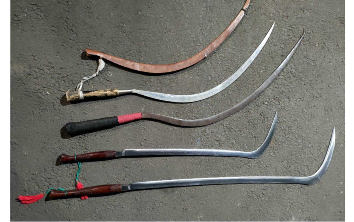Tampak dalam medsos itu, 4 dari 5 remaja itu di antaranya membawa sajam yang sangat panjang di motor. Diduga berjenis celurit dan cordek panjang.