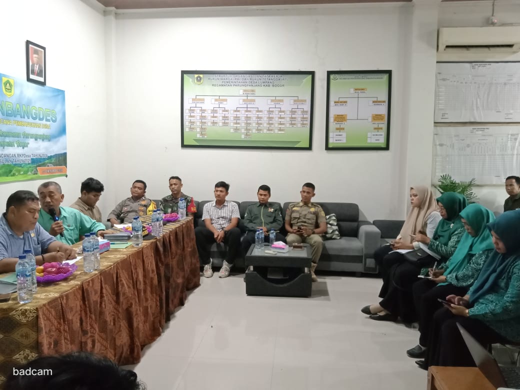Nampak hadir dalam kegiatan rapatSekcam Parungpanjang Mad Yusro S.Sos MM,Kasi Ekbang Kec Pr Panjang Tedi,Pendamping Desa TK Kecamatan,Ketua BPD Ds Lumpang Miftahul,Sekdes Lumpang Raka Nuangsa,Babinsa Lumpang Peltu Jajang,Binmas Lumpang Aipda Sandry,Binwil Lumpang Nuryana,Ket LPM Ds Lumpang Sarif, Ibu Ketua PKK Ds Lumpang Ibu M Rodis Faizal.