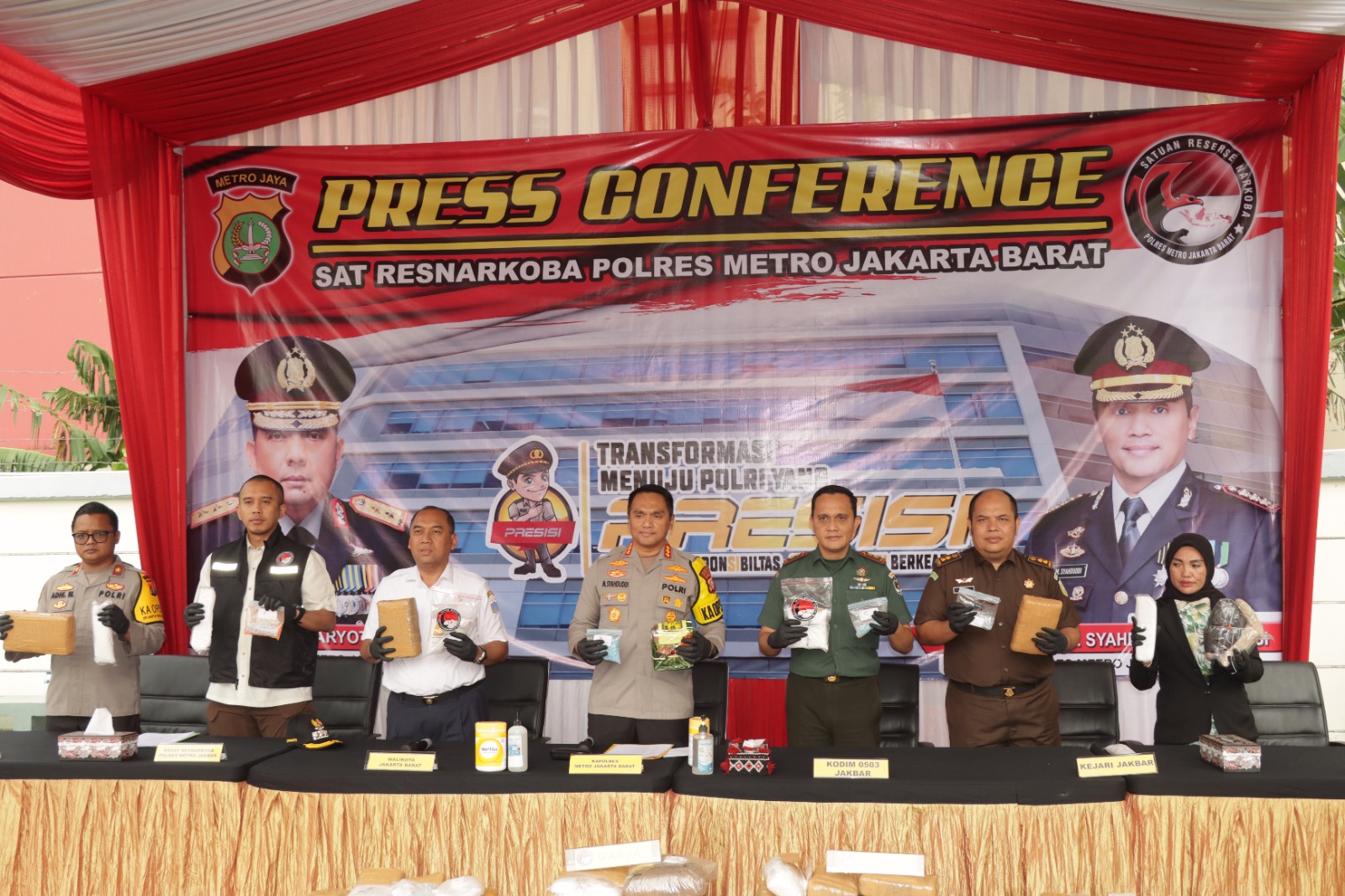 Kapolres Metro Jakarta Barat, Kombes Pol M Syahduddi, menjelaskan bahwa barang bukti tersebut terdiri dari sabu, ganja, dan ekstasi yang berhasil dikumpulkan selama Juli hingga September 2023.