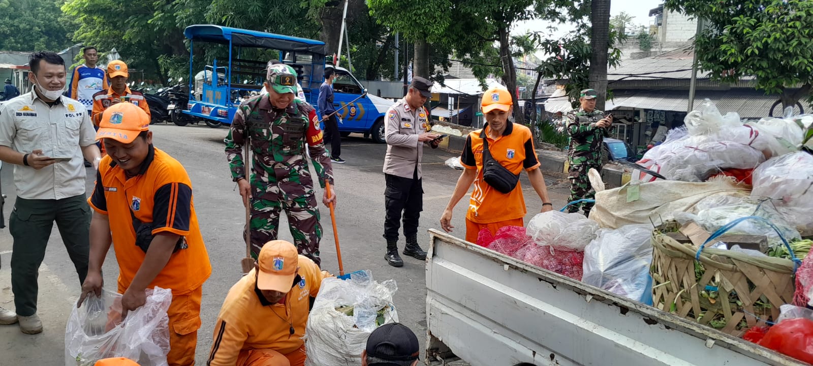 Updatetodaynews.com | JAKARTA – Kodim 0505/Jakarta Timur – Dalam rangka menjaga kebersihan lingkungan PD. Pasar Jaya Ciracas, Koramil 03/Cibubur bersama tiga pilar melaksanakan kegiatan karya bakti membersihkan sampah di sekitar area lingkungan pasar , bertempat di PD. Pasar Jaya Ciracas RT.07/08 Kelurahan Ciracas, Kecamatan Ciracas, Rabu ( 07/08/24 ).