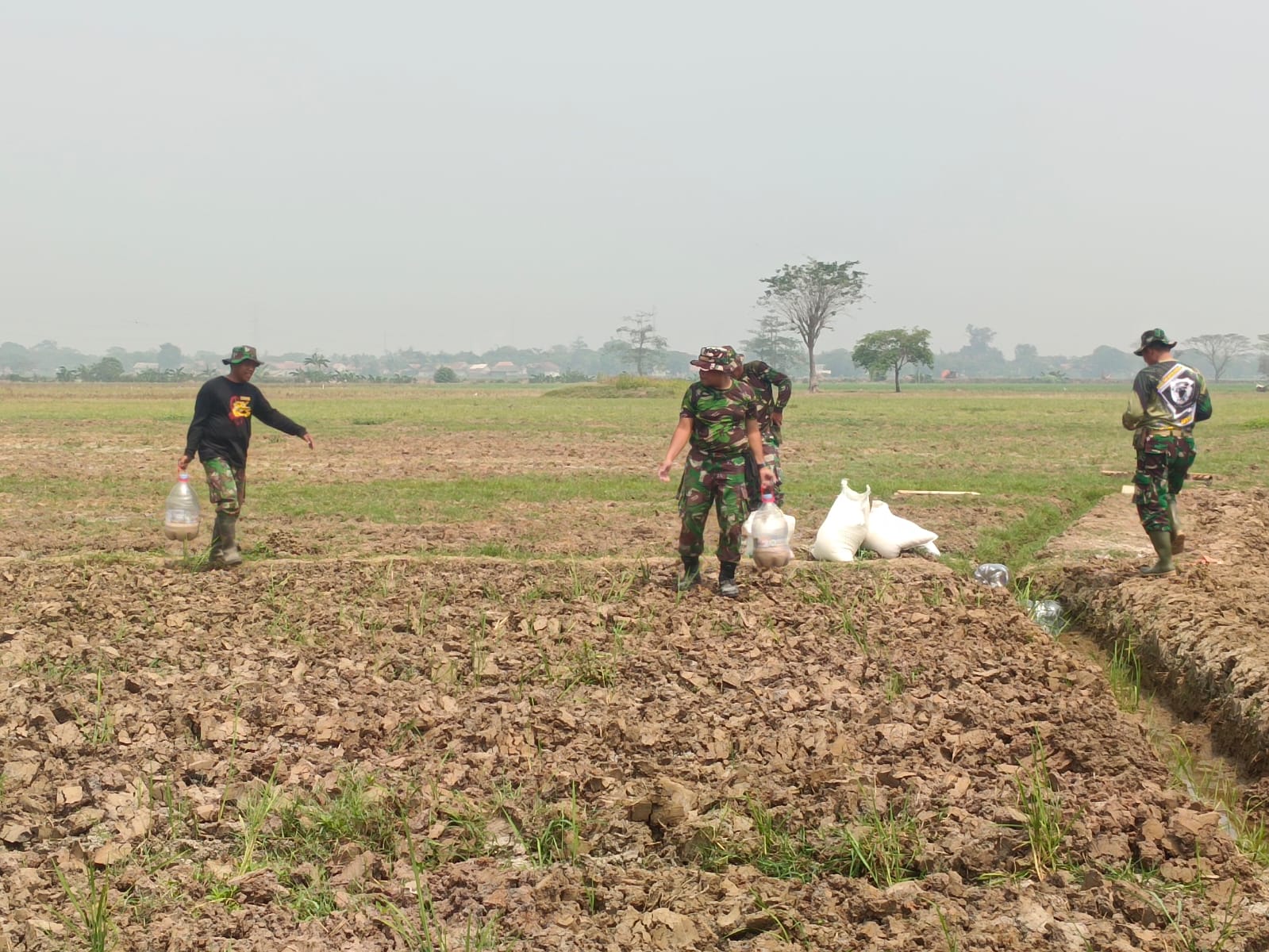 Babinsa Kodim 0509/Kab Bekasi dan Petani Tabur Dolomit dan Posfat di Lahan Urban Farming
