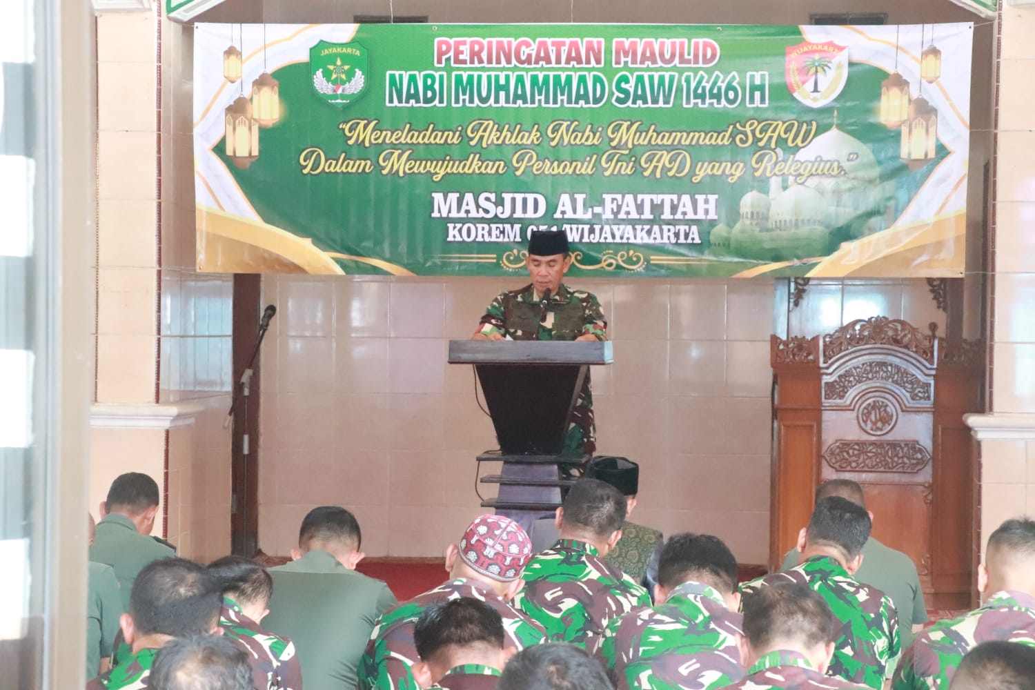 Dalam pesannya, Danrem 051/Wkt menekankan pentingnya meneladani sifat luhur Rasulullah SAW, seperti kesabaran, kerendahan hati, dan ketegasan dalam kepemimpinan. “Sebagai prajurit TNI-AD yang bernafaskan Islam, kita harus meneladani sikap beliau untuk meningkatkan kualitas diri, baik dalam hubungan dengan Allah SWT (Hablum Minallah) maupun hubungan dengan sesama manusia (Hablum Minannas),” ujar Brigjen TNI Riyanto.