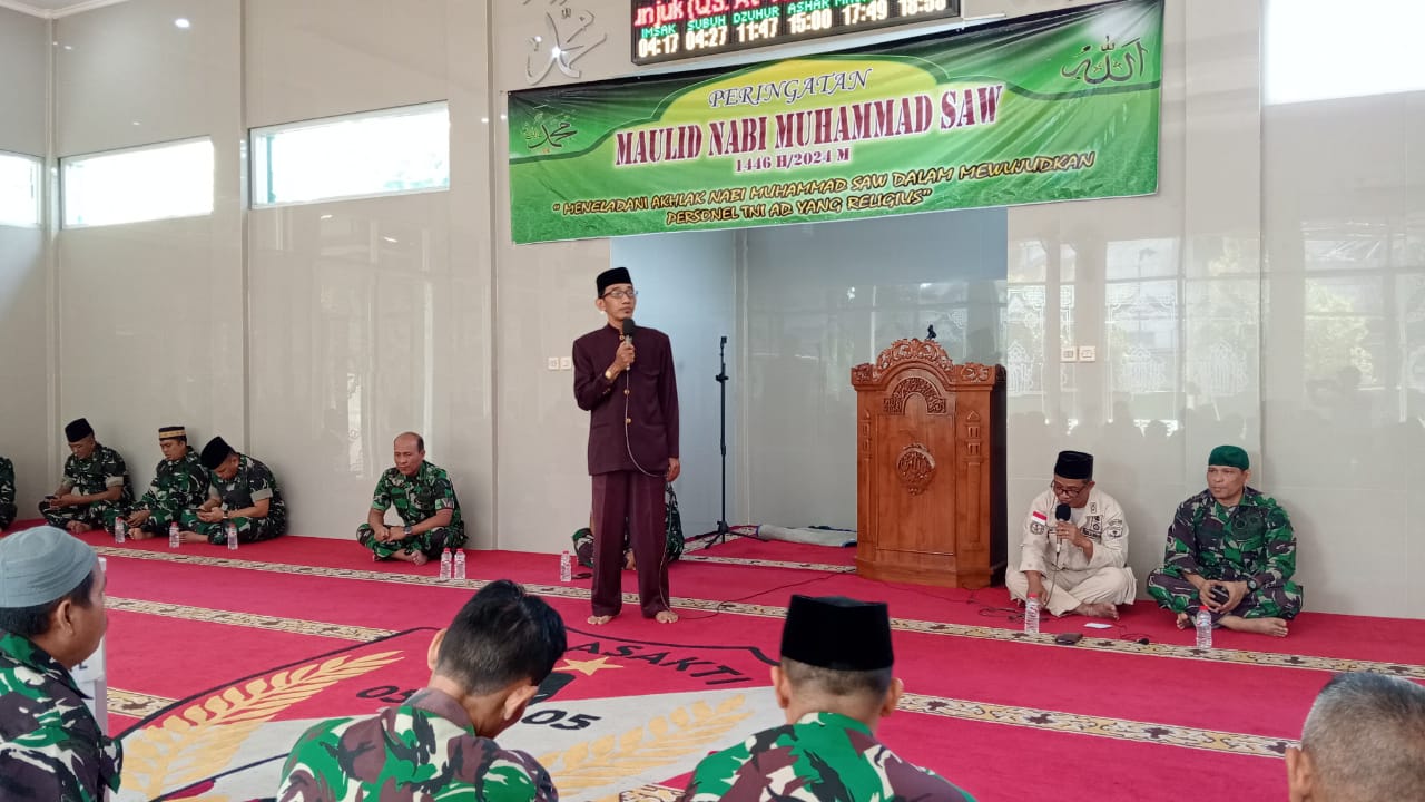 Updatetodaynews.com | Jakarta – Kodim 0505/Jakarta Timur – Bertempat di Masjid Palapa jalan Dr. Soemarno kelurahan Pulogebang kecamatan Cakung Jakarta Timur, Kodim 0505/Jakarta Timur mengadakan peringatan Maulid Nabi Muhammad SAW dengan tema Meneladani Akhlak Nabi Muhammad SAW Dalam Mewujudkan Personel TNI-AD yang Religius. Selasa (17/09/2024).
