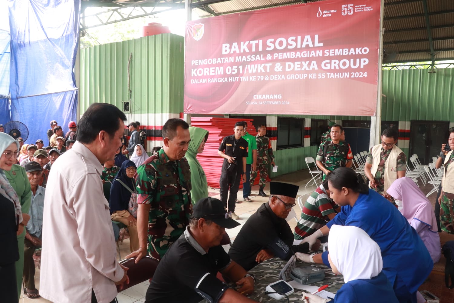 Peringati HUT ke-79 TNI dan HUT ke-55 PT. Dexa Group, Korem 051/Wkt Gelar Bakti Sosial dan Pengobatan Umum