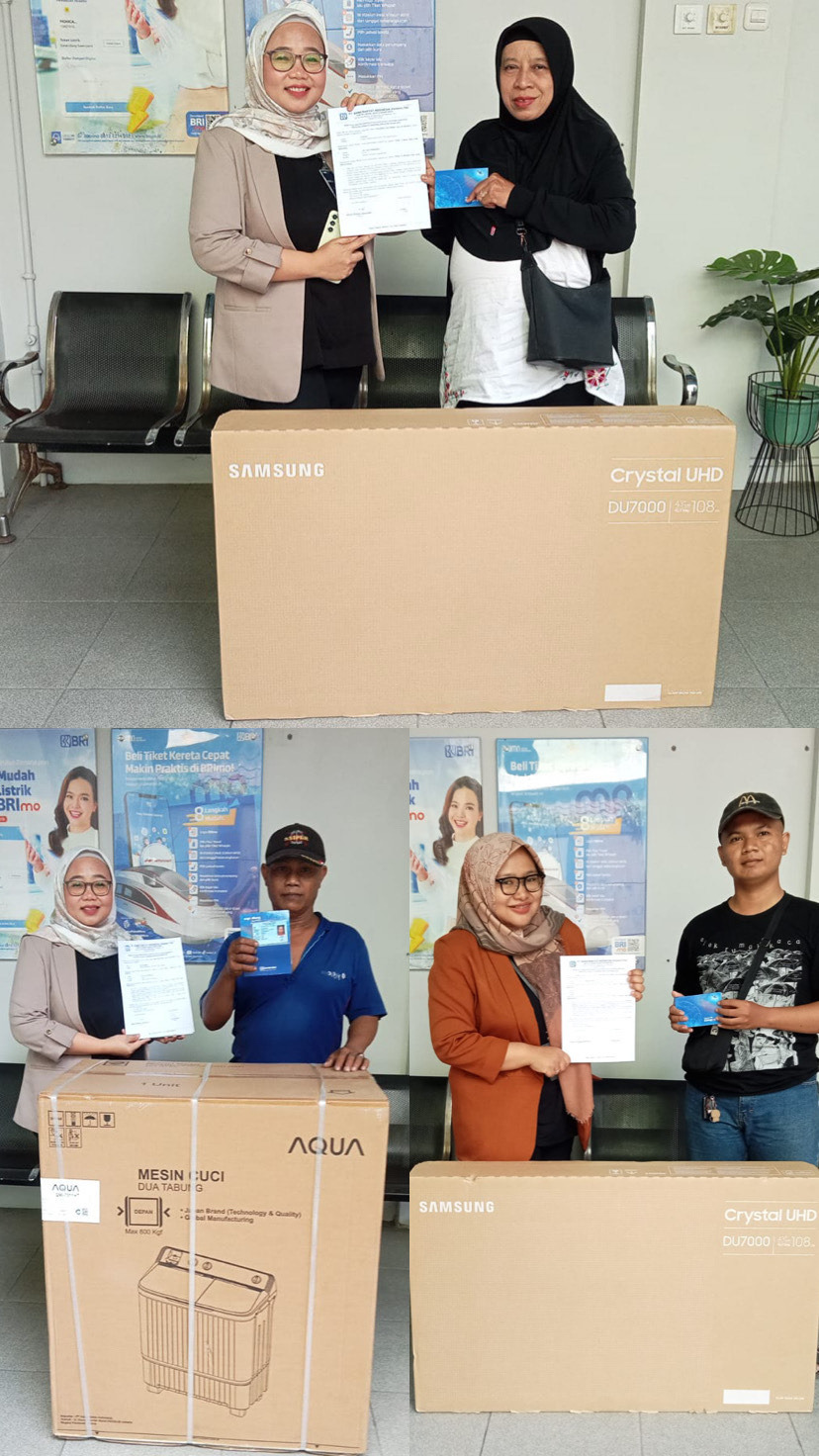 Dalam kegiatan ini, BRI Kebon Jeruk menyerahkan langsung berbagai hadiah menarik kepada para pemenang, antara lain Ginem dan Risjal Aripin yang masing-masing mendapatkan hadiah Televisi LED 43” SAMSUNG DU7000, serta Esperia Hutapea yang memperoleh hadiah Dispenser SANKEN HWDC 500.