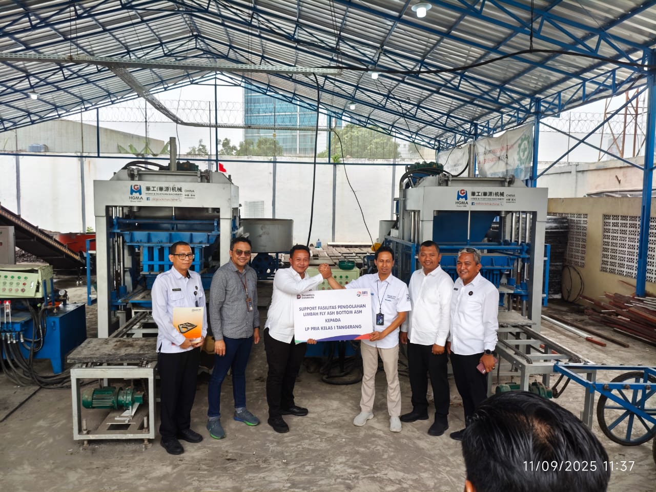 Dalam kesempatan tersebut, Mustofa Adi Saputro, Branch Office Head BRI BO Tangerang Ahmad Yani, hadir langsung untuk menyerahkan fasilitas pendukung operasional workshop yang difungsikan sebagai sarana produksi batako dengan memanfaatkan limbah fly ash dan bottom ash.