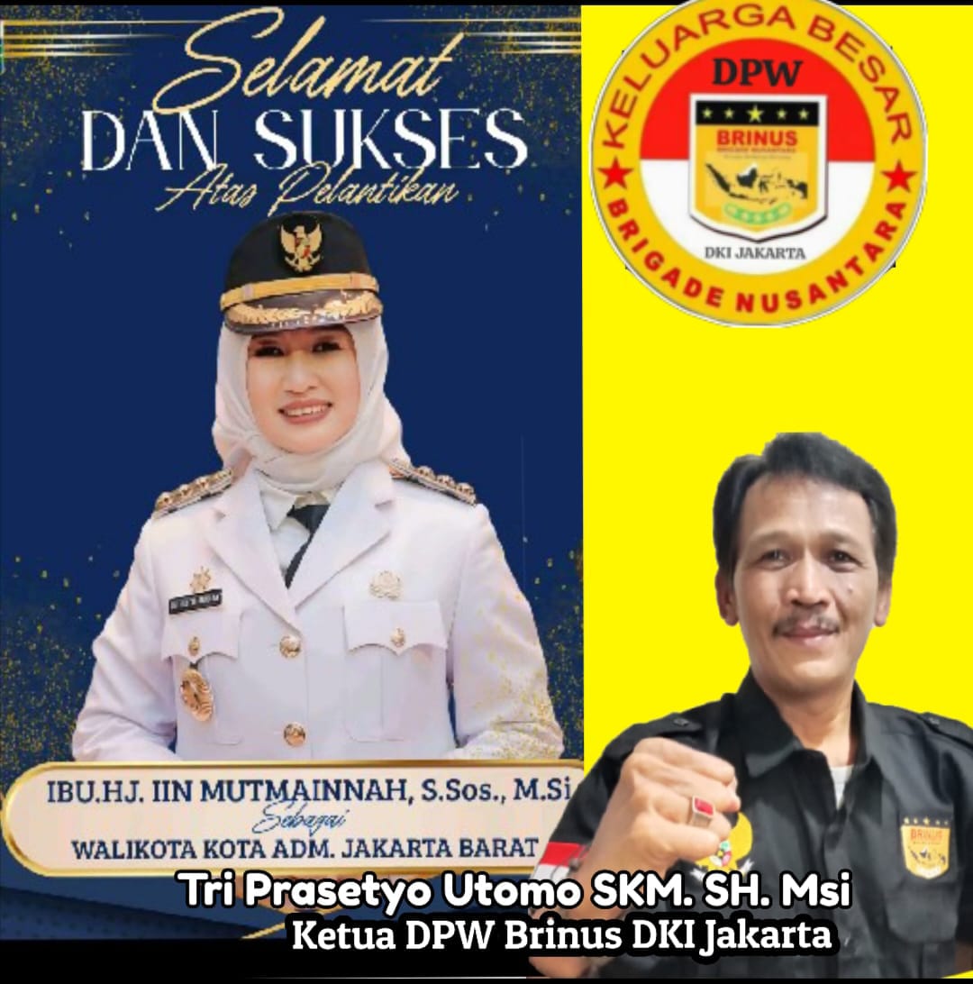 Pelantikan Ibu Iin Mutmainah sebagai Wali Kota Jakarta Barat merupakan bentuk kepercayaan sekaligus penghargaan kepada perempuan bahwa mereka mampu dan layak memimpin serta mengambil peran strategis dalam pemerintahan,” kata Tri ketika mendampingi Pembina Brinus DKI Jakarta Wahyu Syakhala S STP.MM, Rabu (17/12/2025).