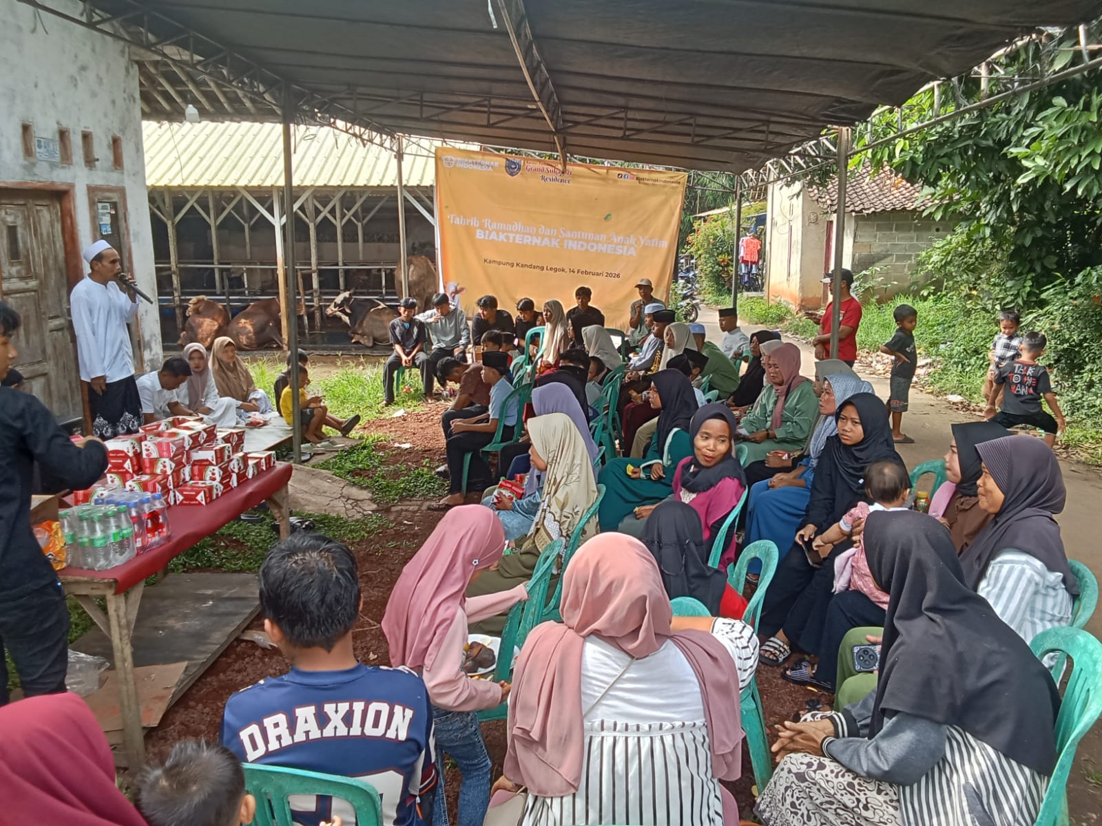 TANGERANG | Updatetodaynews.com — Kampung Kandang, Desa Jatake, Kecamatan Pagedangan, Kabupaten Tangerang. Peternakan Sapi Biak Ternak Indonesia yang dipimpin Irpan Sanjaya menyelenggarakan kegiatan Tarkib Ramadhan sekaligus penyerahan santunan bagi anak yatim dan dhuafa di kawasan Kp Kandang, Desa Jatake. Minggu (15/2/2026),