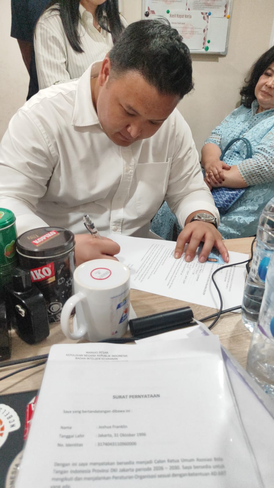 Joshus Franklin telah resmi mendaftarkan diri sebagai calon Ketua Umum Asosiasi Bola Tangan Indonesia (ABTI) Provinsi DKI Jakarta