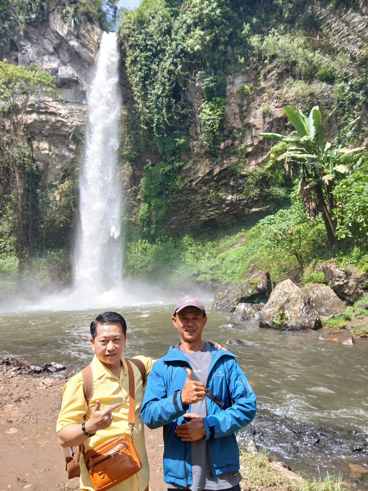 Di lokasi, kami berkesempatan bertemu dengan Pak Mansur, salah satu pengelola Curug yang telah lama mengenal Burhan dan penulis sempat foto bersama Pak Mansur. Percakapan kami berlangsung cukup hangat. Pak Mansur menceritakan bahwa sejak kecil ia telah akrab dengan kawasan Curug ini, bahkan menjadikannya sebagai tempat bermain bersama teman-temannya di masa lalu. Mengingat beliau merupakan putra asli daerah setempat.