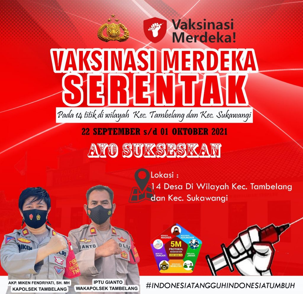 350 ViewsBekasi, Updatetodaynews.com – Polsek Tambelang, Polres Metro Bekasi siap menyukseskan program vaksinasi yang bertajuk…