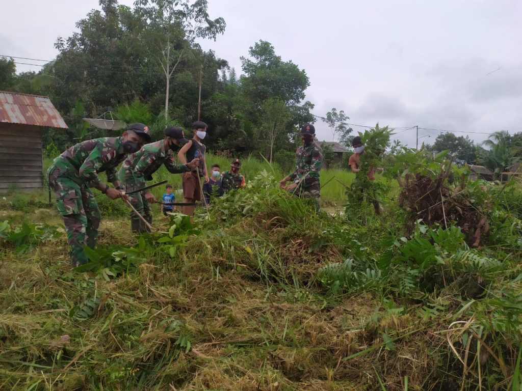 Satgas Yonif 144/JY Bangkitkan Nilai Gotong Royong di Tengah Warga Perbatasan